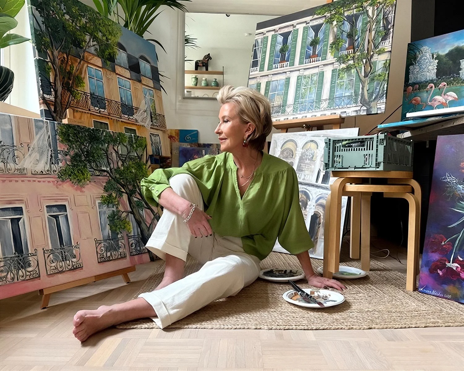 Leena maalaa sitä, mikä sielussa värähtää. Ikuinen kaipaus kauneuteen ja elämäniloon on hyvä motivaatio luoda uusia maalauksia, joissa yhdistyvät kukat, interiöörit ja näkymät, jotka ovat usein muistoja matkoilta, mutta inspiraationa voi toimia myös valokuva tai vaikkapa ystävän kaunis koti.